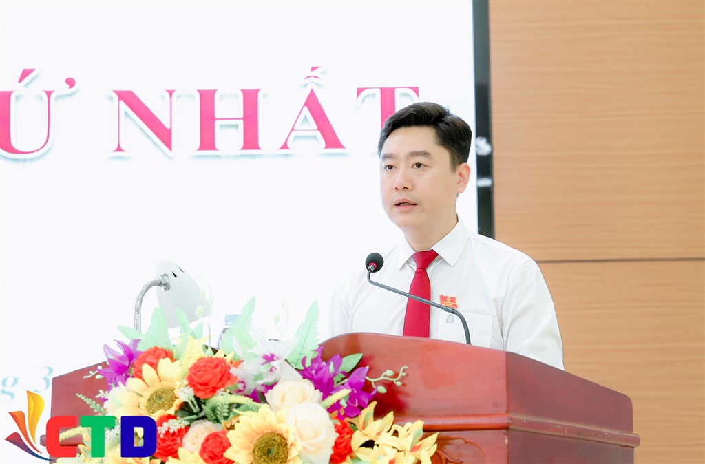 Đồng chí Lô Thanh Nhất, Ủy viên BTV Huyện ủy, Phó Chủ tịch UBND huyện, Chủ tịch Hội Khuyến học huyện phát biểu tại hội nghị
